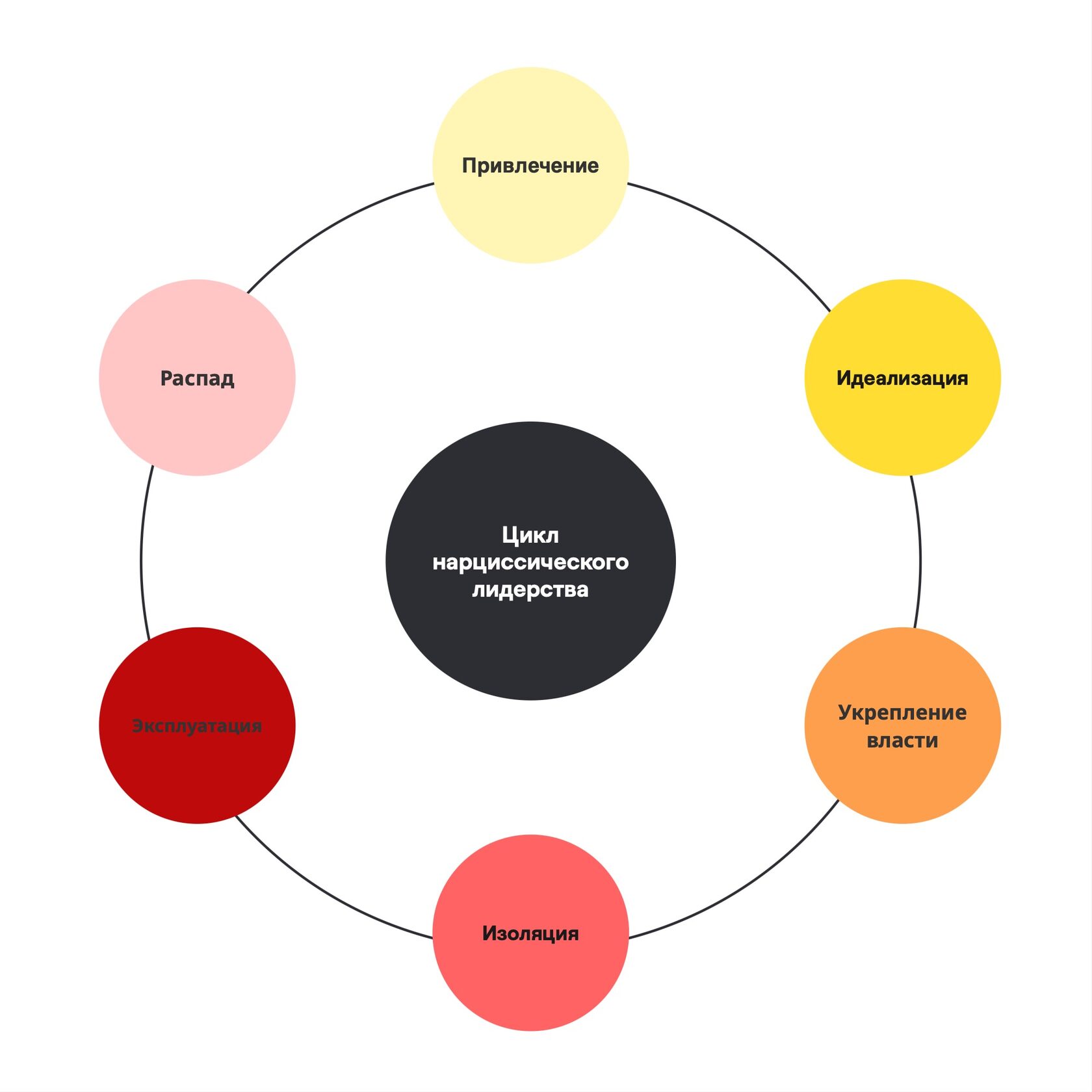 Возникает замкнутый круг: чем больше власти получает лидер, тем сильнее развиваются его нарциссические черты, что в свою очередь требует еще большего контроля и признания.